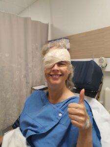Michele after her eye surgery