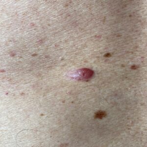 Late last year, Gill noticed a pink spot on his lower back and kept an eye on it. As soon as it became raised and itchy, they immediately made an appointment with a skin specialist in the community to get it checked.